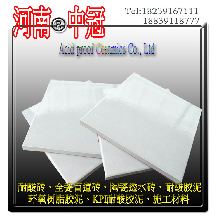 河南中冠公司*业生产防腐耐酸砖、全瓷盲道砖,kp1耐酸胶泥、环氧树脂胶泥、***树脂胶泥和陶瓷透水砖等产品,产品经中国建材检测中心检验符合相关行业标准。