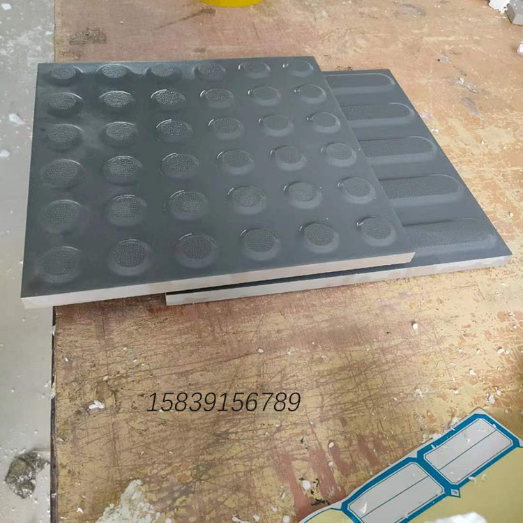 该产品是由两种组成:一种是圆点提示止步盲道砖;一种是条形行进指路盲道砖。一般高铁用圆点盲道砖较多,地铁用条形盲道砖较多。