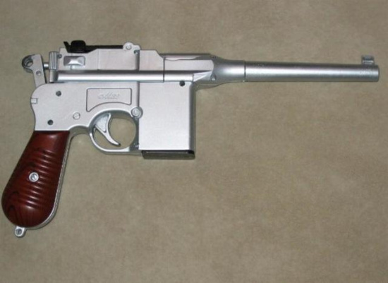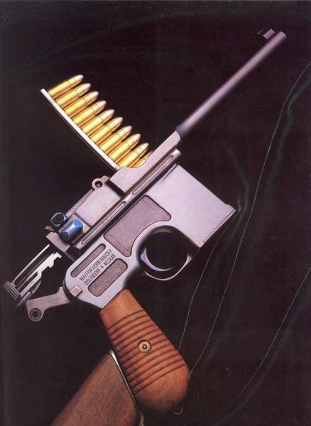 毛瑟军用手枪是世界上最早出现的自动手枪之一,由德国毛瑟兄弟研制,并以毛瑟命名。毛瑟军用手枪采用短后座力(Short Recoil)式作业,其正式装填方式和毛瑟步枪相同,用10发装的桥夹,由上方压装,无论是7.63mm或是9mm,都可使用相同的桥夹。毛瑟军用手枪是由德国毛瑟兵工厂在1895年12月11日取得专利,次年正式生产,1939年毛瑟厂停止生产,共生产了约一百万把毛瑟军用手枪,其它国家仿制了约数百万把。