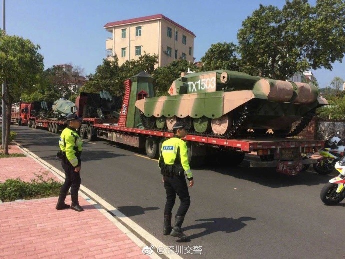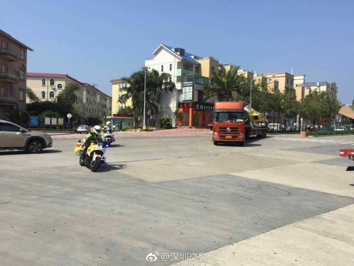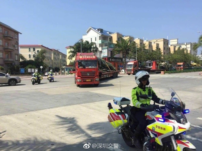 4月3日中午,@深圳大鹏交警 铁骑在鹏飞路巡逻时,发现三辆运载“军火”的货车在路上停着,影响交通。