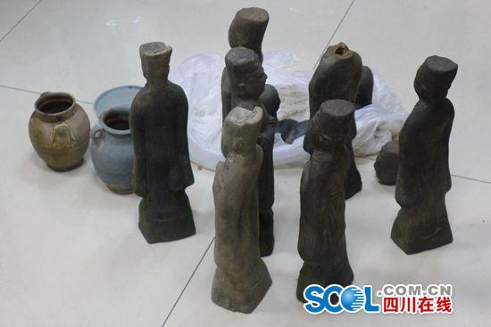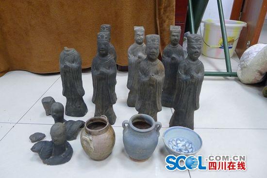 为了摸清陶俑和陶罐的真实身份,都江堰车站派出所立即将行李的主人张某拦下,并与都江堰市文物局工作人员取得联系。经市文物局工作人员现场鉴定,该男子行李箱中物品确为文物,其中包括南宋陶俑8个、南宋双耳陶罐2个,清初青花瓷碗1个。