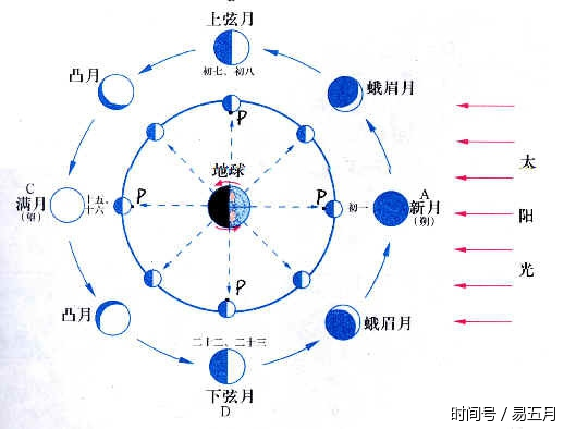 先判断一下月相,我们已经推断出,月球在太阳和地球之间,那么必然是新月,也就是农历初一左右。