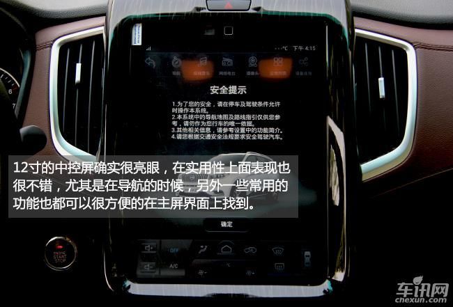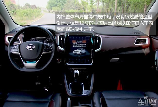 说了这么多外观,我们再来感受下斯威X7的内饰,相比外观整体的用心程度,在内饰方面斯威X7则主要把更多的精力,放在了那块12英寸的大中控屏以及车载系统上,在一些面板的用料方面还是比较顾及成本的。