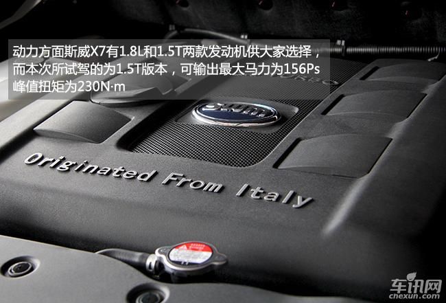 本次试驾的车型为1.5T涡轮增压发动机,而值得一提的是斯威X7全系都配备的为爱信5速手动变速箱。