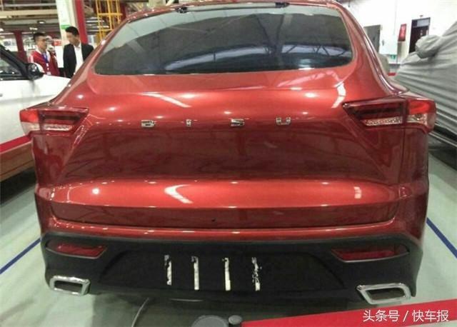 车尾很简单,就“BISU”四个字母在中间,然后翘得特别高,从后面看过去,总感觉尾灯向两侧凸出来怪怪的。另外,两侧用了镀铬装饰的排气口,不知道是真的还是假的!
