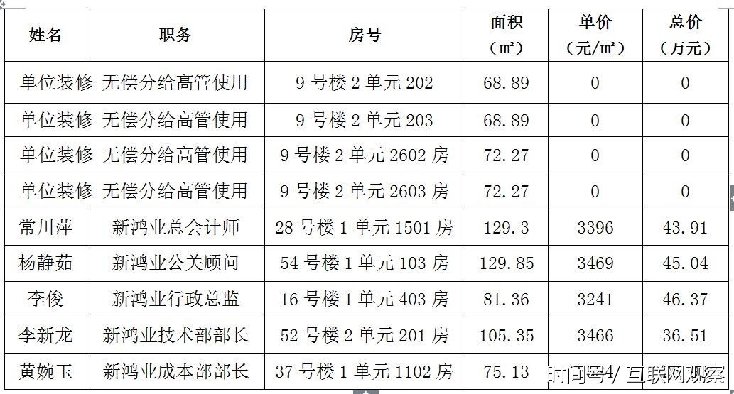以下公布新鸿业发展有限公司部分高管的违规住房和占房信息: