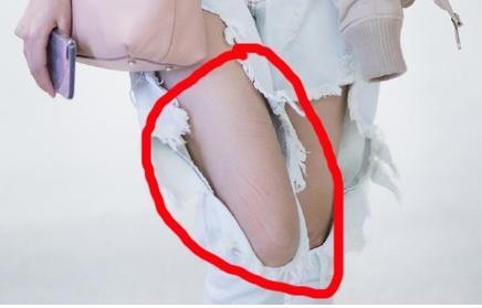 只是这破洞裤洞开得太大,不知道是什么东西压在腿上,腿上全是明显的印记,这样看来破洞裤似乎并不那么美好。