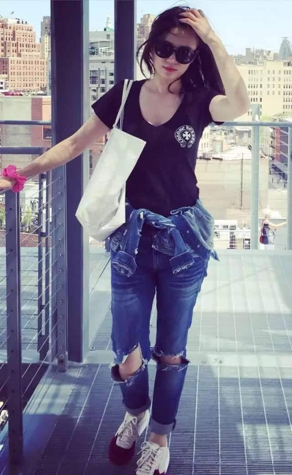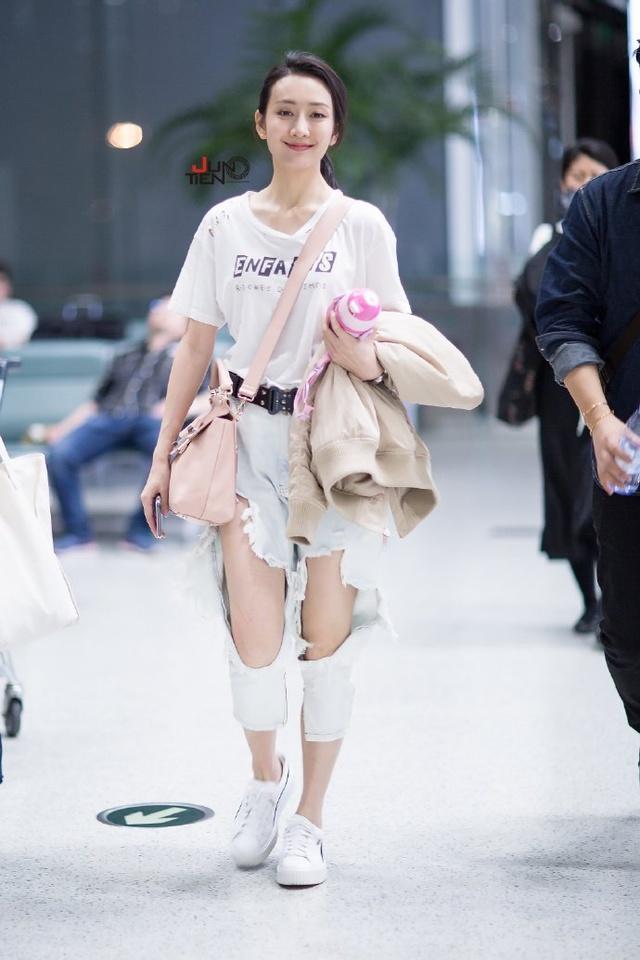 想不到一直走气质路线的刘诗诗也穿过破洞裤,整体搭配很低调简单,毫无违和感,站在那里淡淡一笑有种岁月安好的感觉。刘诗诗这条和其他人比起来,也是中规中矩的风格啦!