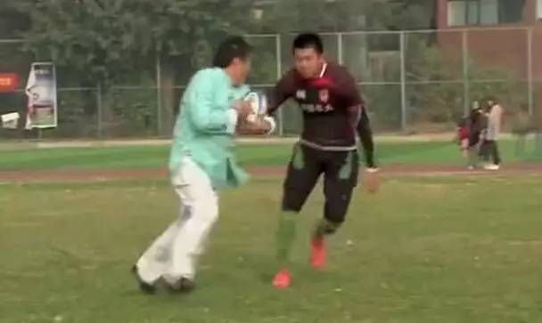 根据这位叫李铁托的网友所说,一开始“王老师由于没有橄榄球实战经验想在被扑搂的瞬间利用滚翻脱身,结果腿被锁死落地伤到了肩膀”。这本来也可以用“王老师年龄大了”或者“不了解橄榄球动作”来解释,结果节目组以“一代太极宗师在你们的场地上受了伤这责任你们谁也承担不起”来威胁,要求三个学生“在完全违背橄榄球防守原则的情况下对王老师进行防守”。