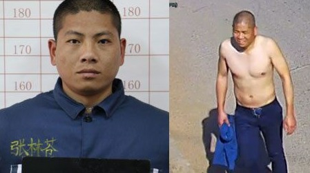8天后的5月10日早上,网上出现几张照片,一名光着身子的男子,被荷枪实弹的武警抓获,图片被配以"嵩明小街派出所辖区接群众举报,说看见一个长像类似张林苍的人在附近出没,随后嵩明公安局出动发现踪迹,武警特警再出动,围捕过程中,逃犯一路沿药灵山方向跑,据说出动了武警,特警,特勤,无人机"。