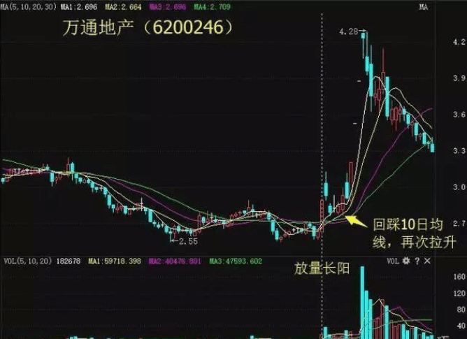 5、放量上涨后回踩10日均线甚至20日均线,再次拉升。
