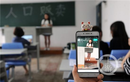 昨日下午,西南大学应用技术学院教室,邹琰老师用手机进行视频直播推销学生。