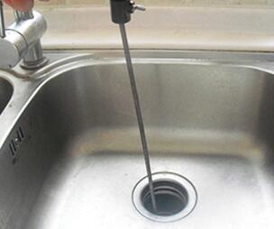 把这根简易疏通棒一端缓缓插入下水道口,另一端双上绳子留在外面拽住,接着把水龙头打开,对着下水道冲1-2分钟左右,再把水龙头关上,迅速地把疏通棒抽出来,你会发现它的上面布满了各种头发丝之类的杂物。