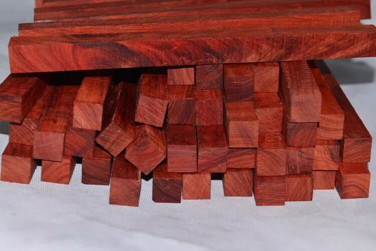 学名非洲紫檀,心材颜色变化大,新切面血红色,久则呈紫褐色,有深色条纹,有时咖啡色纹理十分明显,是非洲所产亚花梨木材中材质最好、纹理最美的。