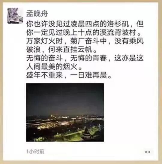 盛年不再来,一日难再晨!这是怎样一份令人心疼的告白,在孟晚舟豁达的语气之外,你是否感觉出一丝英雄坐老的落寞?