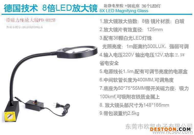 1、适用于机械厂、机床/机械加工时用,可以任意吸附在金属工作台上或各种加工机床机械上,光线强度大,可以做机床附属灯,放大镜可以随观察和检验加工后的产品质量,体积小,带磁性开关的底座可以任意根据需要安置;