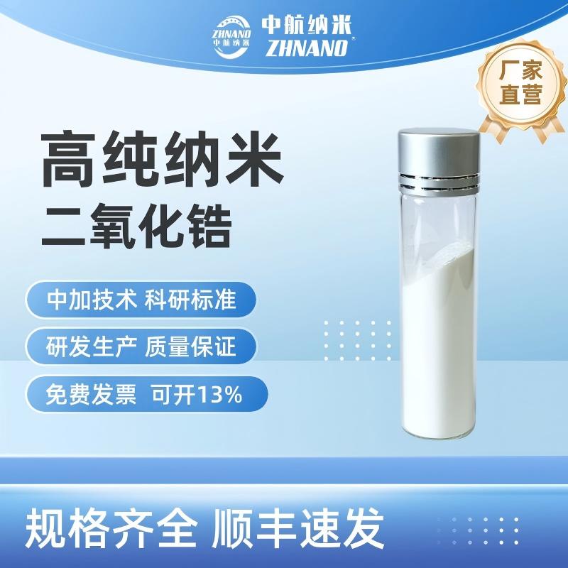 高纯纳米二氧化锆通过等离子体气相燃烧法制备,纯度高、粒径小、分布均匀,比表面积大、表面干净,无残余杂质,松装密度低,易于分散,纳米氧化锆,硬度较大、常温下为绝缘体、而高温下则具有优良的导电性,具有抗热震性强、耐高温、化学稳定性好、材料复合性突出等特点。